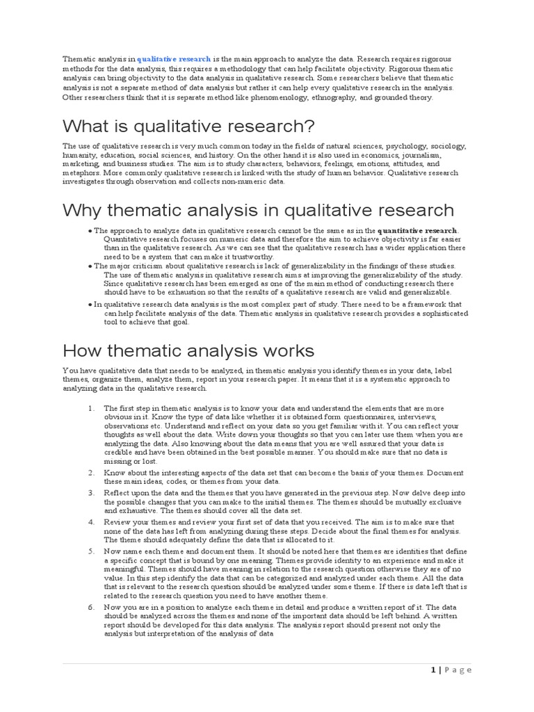 Why thematic analysis in qualitative research