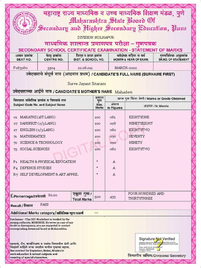 BOARD OF SEC. AND H.SEC EDUCATION PUNE