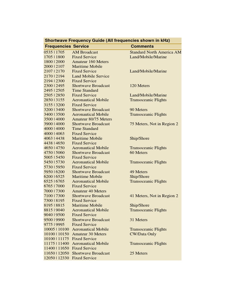 Shortwave Frequency Guide (All frequencies shown in kHz)
