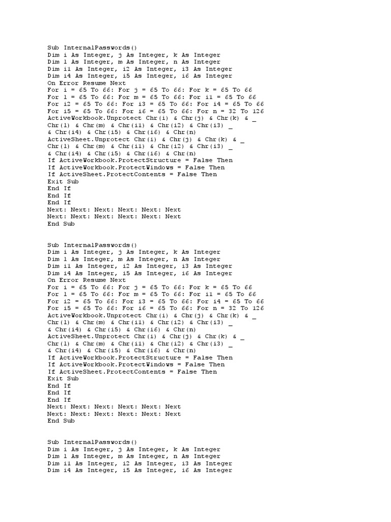 Sub InternalPasswords()