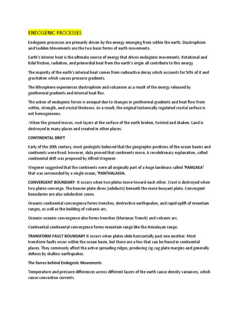 Endogenic processes are primarily driven by the energy emerging from within the earth. Diastrophism