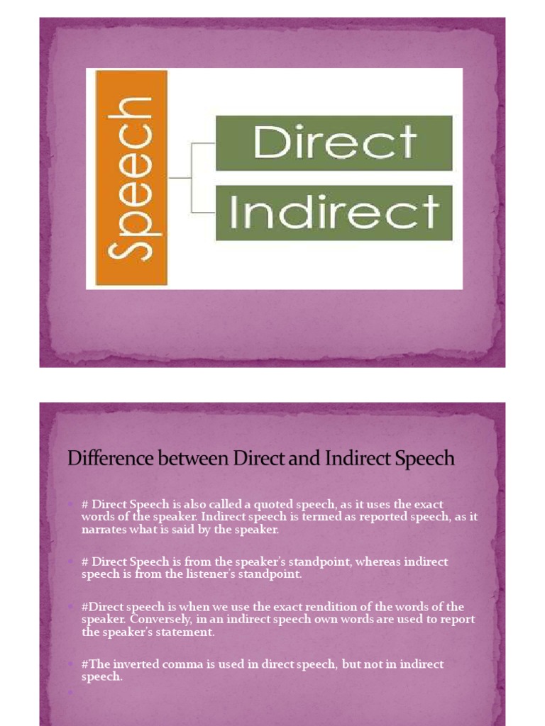 # Direct Speech is from the speaker’s standpoint, whereas indirect