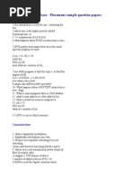 http://www.techinterviews.com/telecommunications-interview-questions A well-known telecommunications company uses this pop quiz for oral and written examinations of applicants for engineering positions. 1. A 2MB PCM(pulse code modulation) has a) 32 channels b) 30 voice channels & 1 signaling channel. c) 31 voice channels & 1 signaling channel. d) 32 channels out of which 30 voice channels, 1 signaling channel, & 1 synchronization channel. Ans: c 2. Time taken for 1 satellite hop in voice communication is a) 1/2 second b) 1 seconds c) 4 seconds d) 2 seconds Ans: (a) 3. Max number of satellite hops allowed in voice communication is: a) only one b) more han one c) two hops d) four hops Ans: (c) 4. What is the maximal decimal number that can be accommodated in a byte? a) 128 b) 256 c) 255 d) 512 Ans: (c) 5. Conditional results after execution of an instruction in a micro processor is stored in a) register b) accumulator c) flag register d) flag register part of PSW(Program Status Word) Ans: (d) 6. Frequency at which VOICE is sampled is