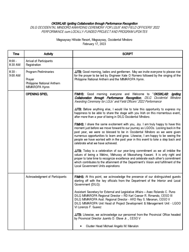 Ladies and gentlemen, let us welcome the DILG MIMAROPA Regional Director, Dir.