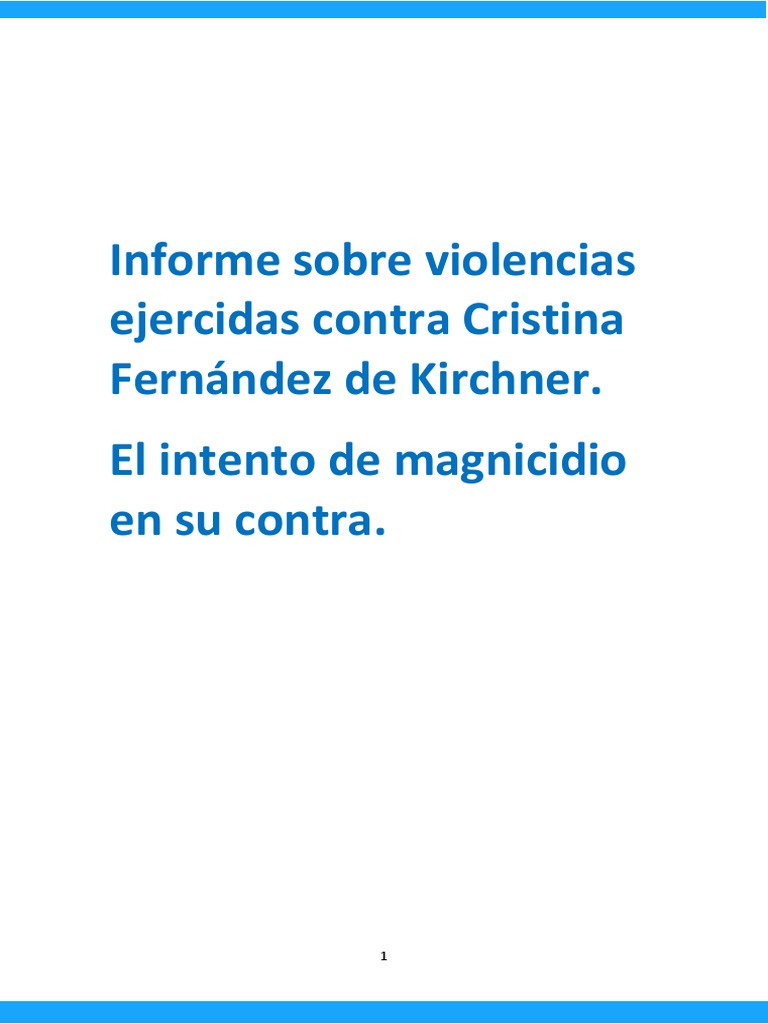Informe sobre violencias ejercidas contra Cristina Fernández de Kirchner. El intento de magnicidio en su contra.