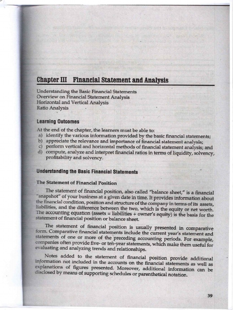 Chapter III Financial Statement and Analysis