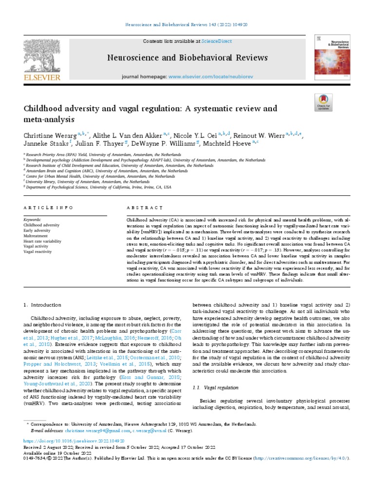 2009; Ottaviani et al., 2019). the association between childhood adversity and vagal regulation.