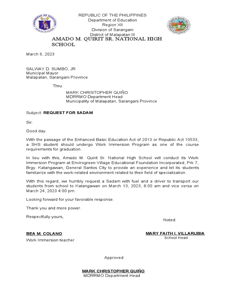 In lieu with this, Amado M. Quirit Sr. National High School will conduct its Work