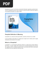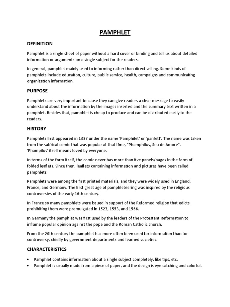 Pamphlet is a single sheet of paper without a hard cover or binding and tell us about detailed