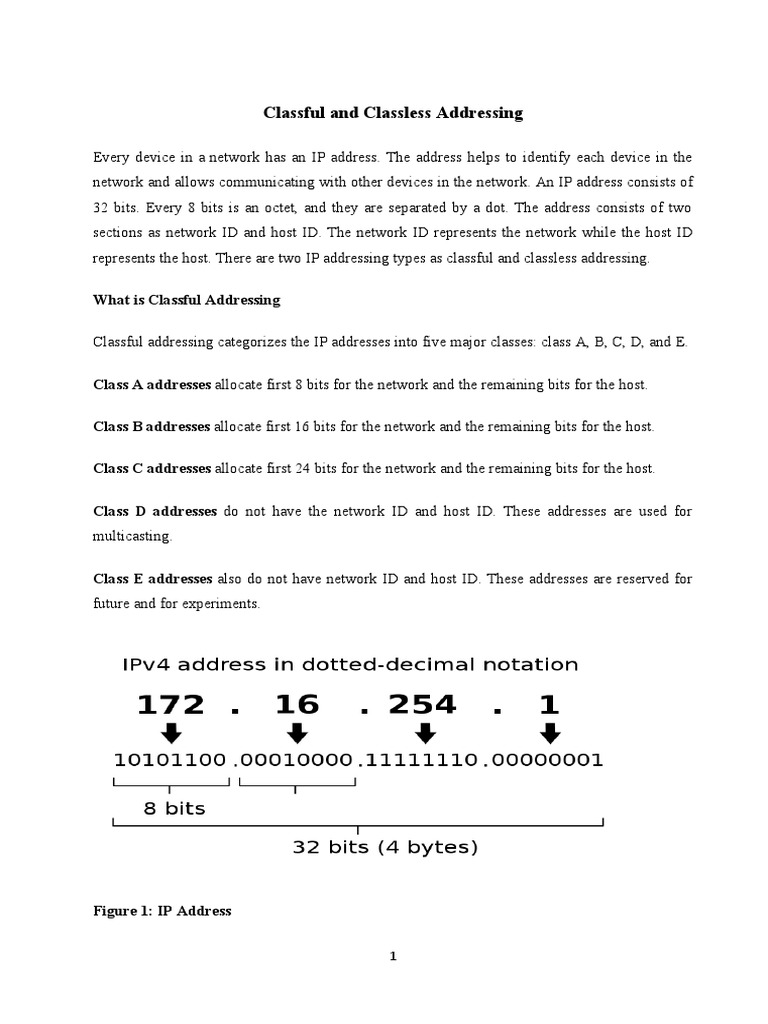 Classful addressing categorizes the IP addresses into five major classes: class A, B, C, D, and E.