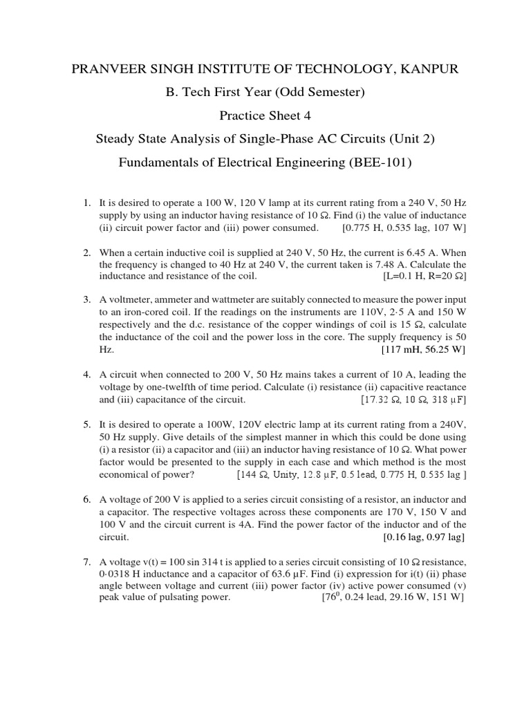 Steady State Analysis of Single-Phase AC Circuits (Unit 2)