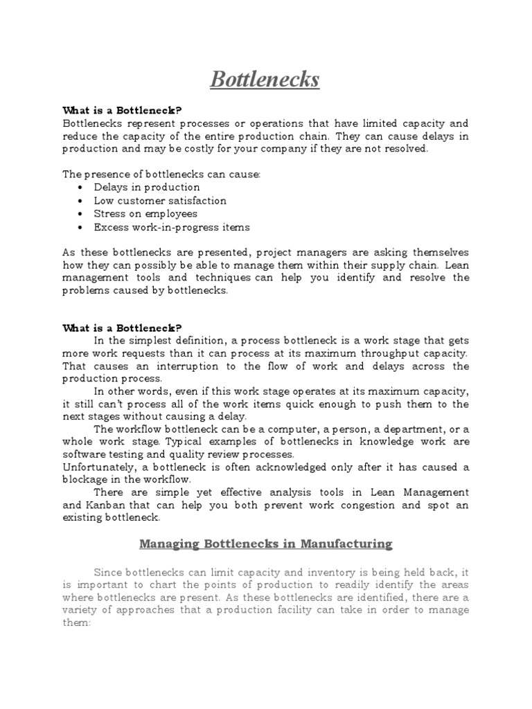 The concept of bottlenecking was central to the Theory of Constraints. It
