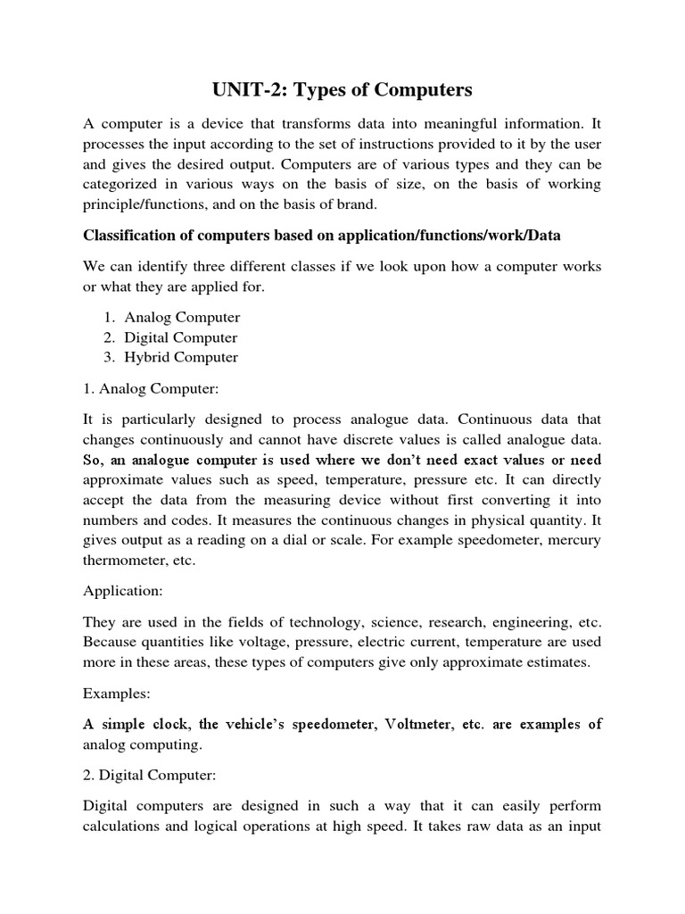 size, storage capacity, and cost of such computers mainly depend on the nature