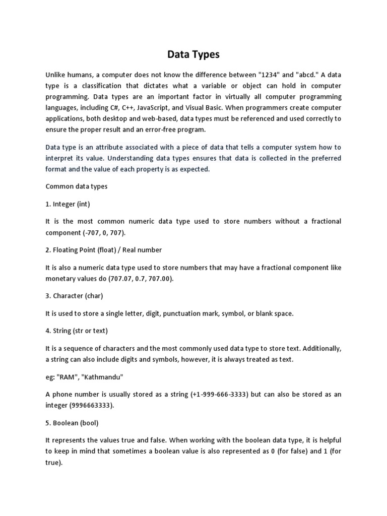 interpret its value. Understanding data types ensures that data is collected in the preferred
