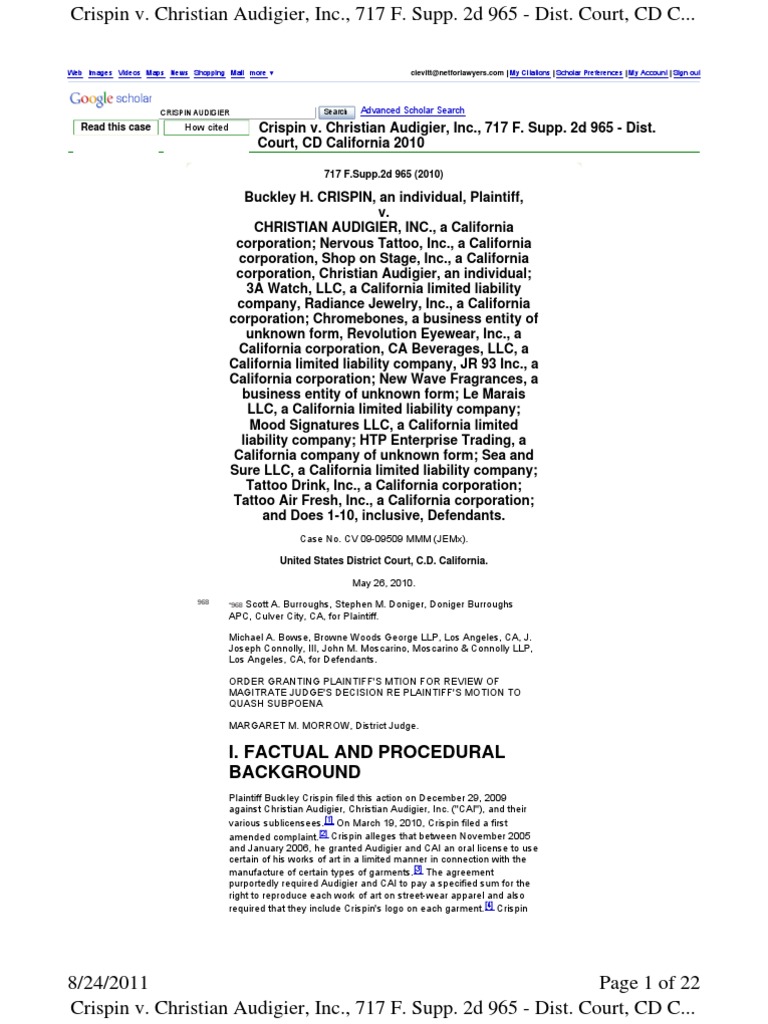 Crispin v. Christian Audigier, Inc., 717 F. Supp. 2d 965 - Dist. Court, CD C...