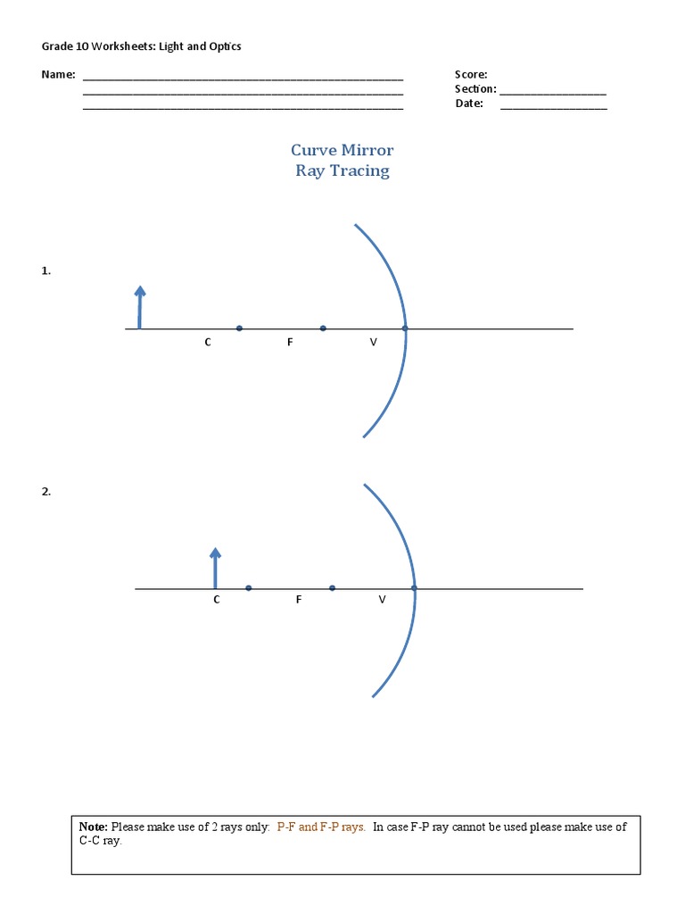 Grade 10 Worksheets: Light and Optics