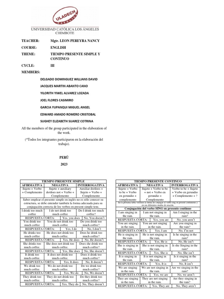 únicamente en la tercera persona, mientras en la tercera y cuarta reglas se Todos los verbos deben terminar en -ing