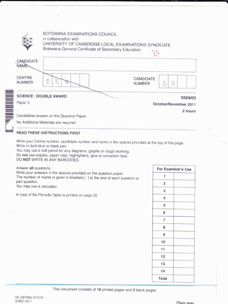 Botswana Science Exam Paper 2011