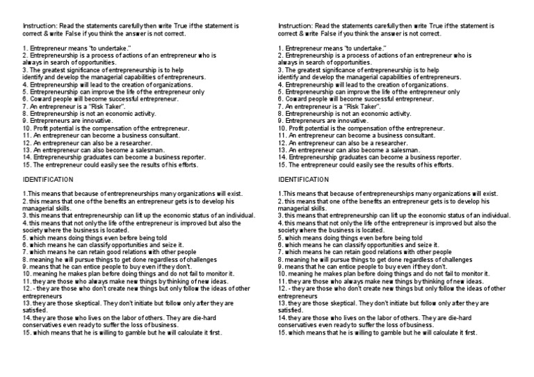 Instruction: Read the statements carefully then write True if the statement is Instruction: Read the statements carefully