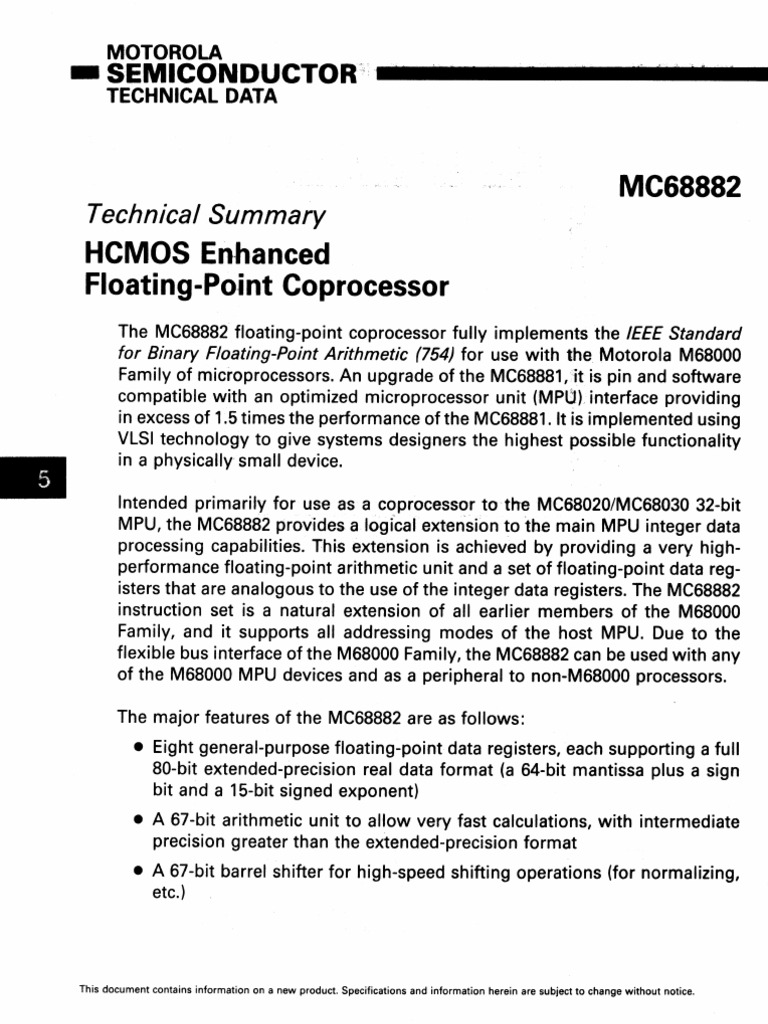 MC68882with respectto the MC68020/MC68030 whenever possible