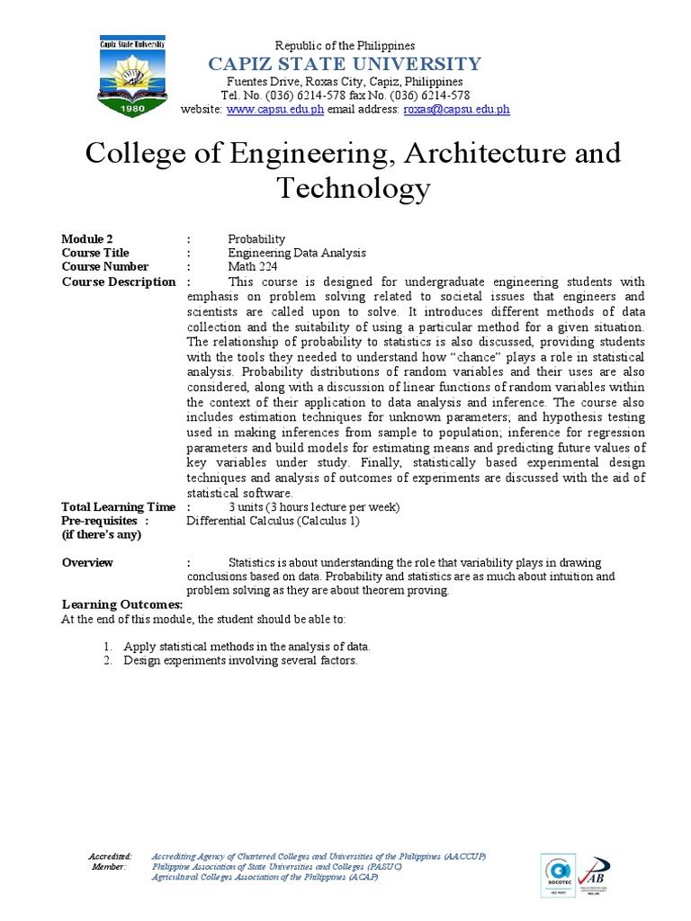 Course Title : Engineering Data Analysis