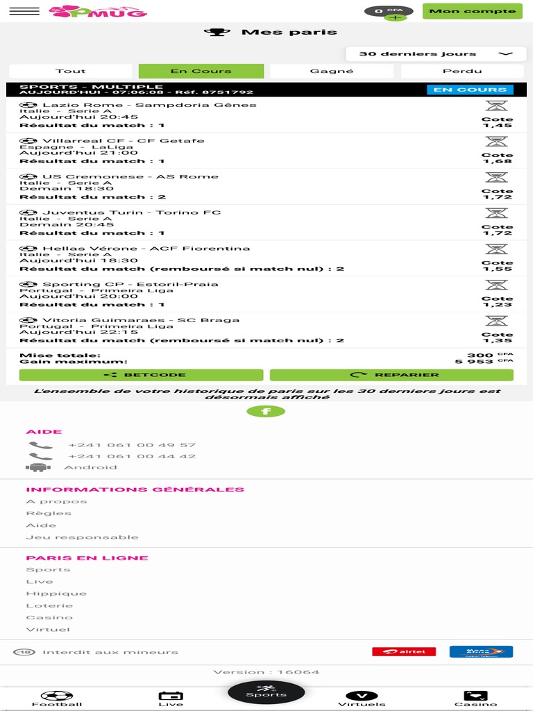L'ensemble de votre historique de paris sur les 30 derniers jours est