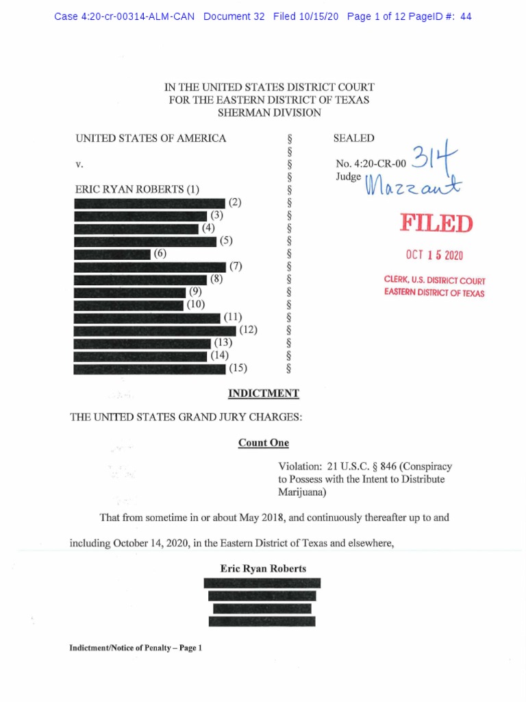 Case 4:20-cr-00314-ALM-CAN Document 32 Filed 10/15/20 Page 1 of 12 PageID #: 44