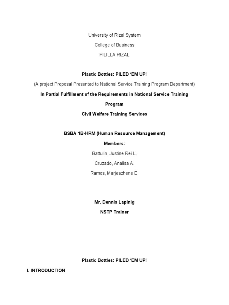 plastic bottles for over one month. The estimated duration of the recycling project would