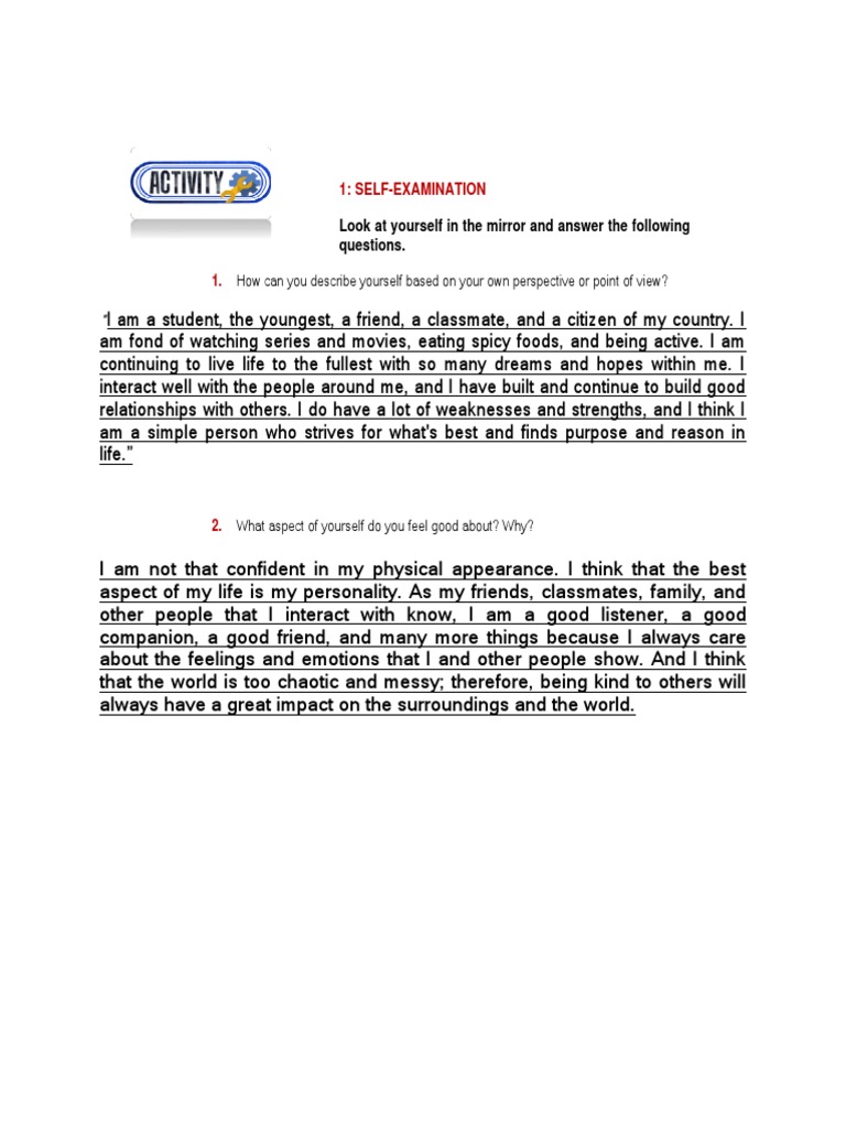 SELF-DESCRIPTION ESSAY. Write an essay anything that you