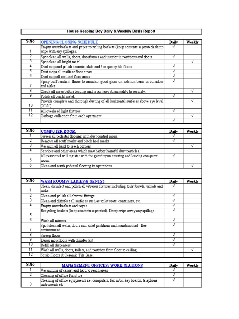 4 Maintain the Housekeeping check IN & Out time on daily basis √