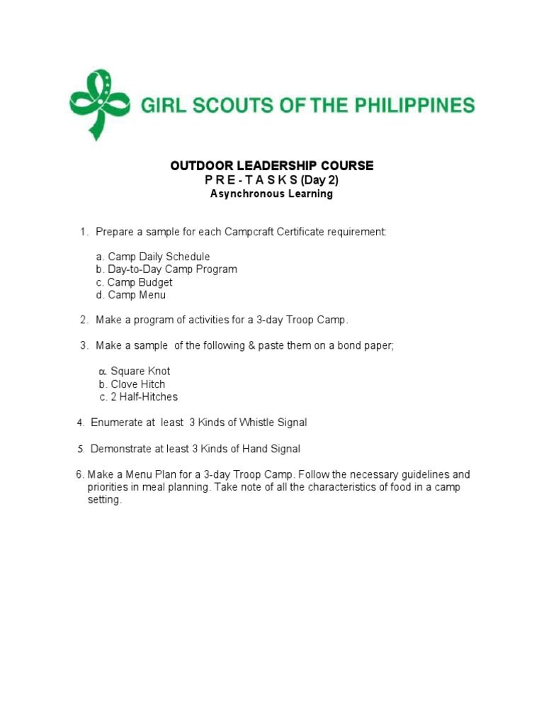 1. Prepare a sample for each Campcraft Certificate requirement: