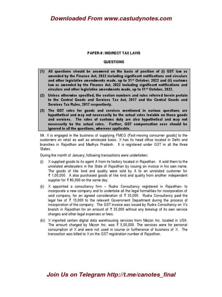(1) All questions should be answered on the basis of position of (i) GST law as