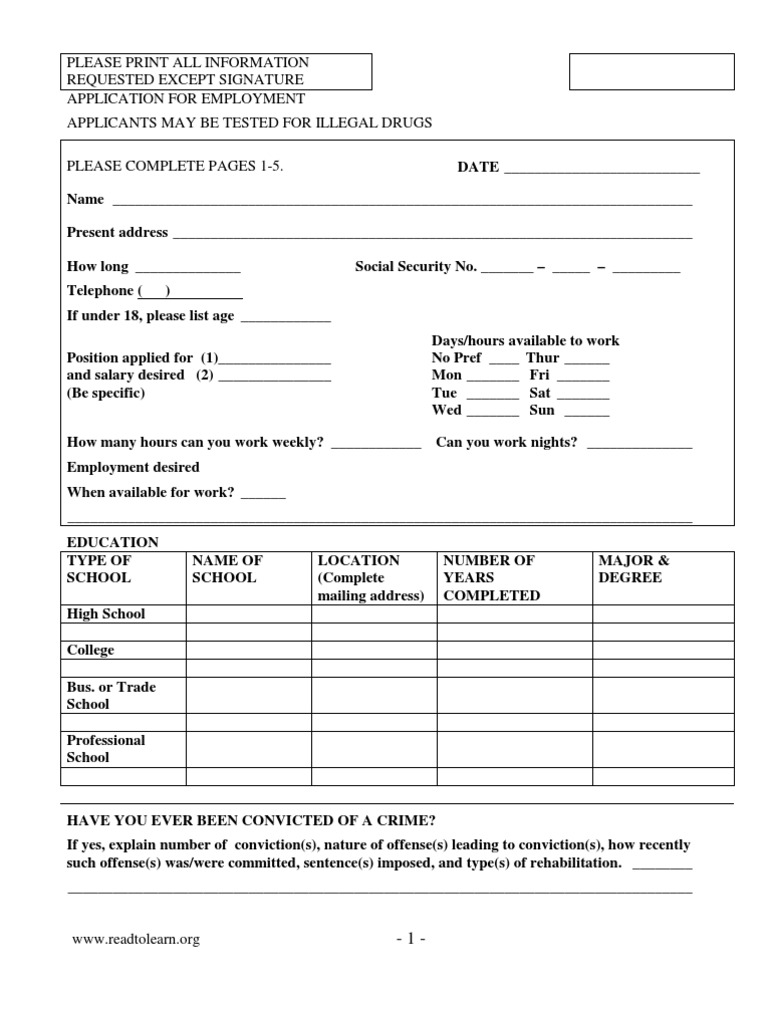 APPLICATION FOR EMPLOYMENT