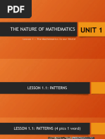now agree: mathematics is the science of patterns. What the mathematician does is examine