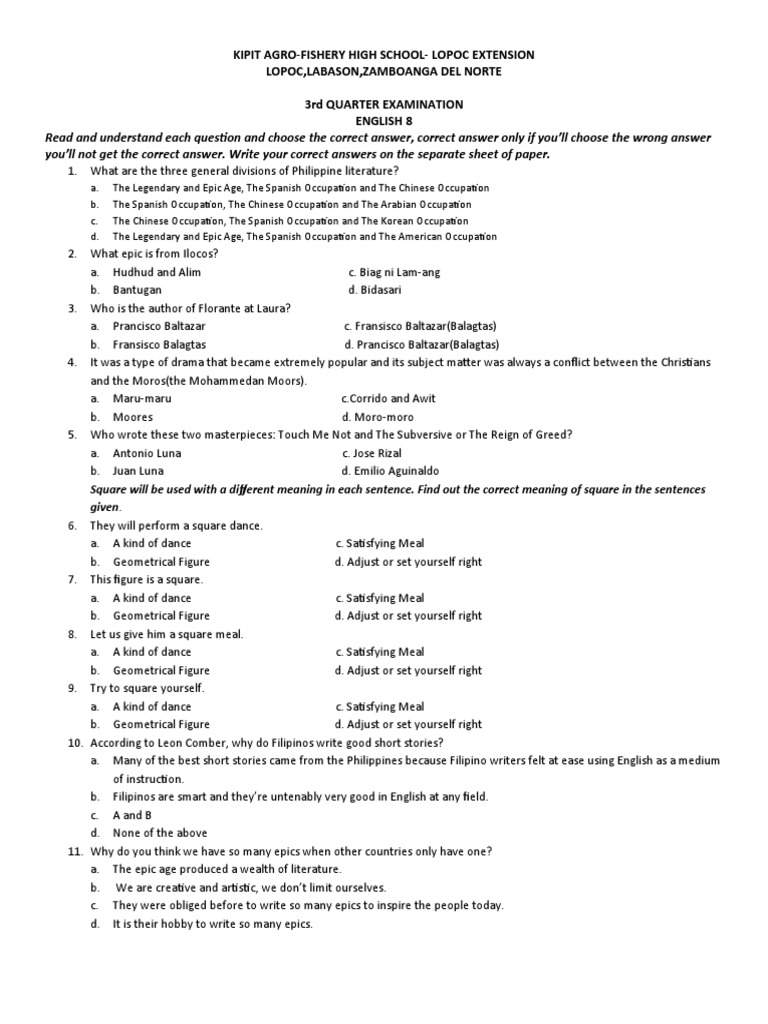 3rd QUARTER EXAMINATION