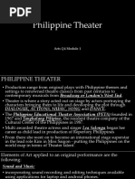 traditional Filipino theater such as sarswela and ritualistic dramas.