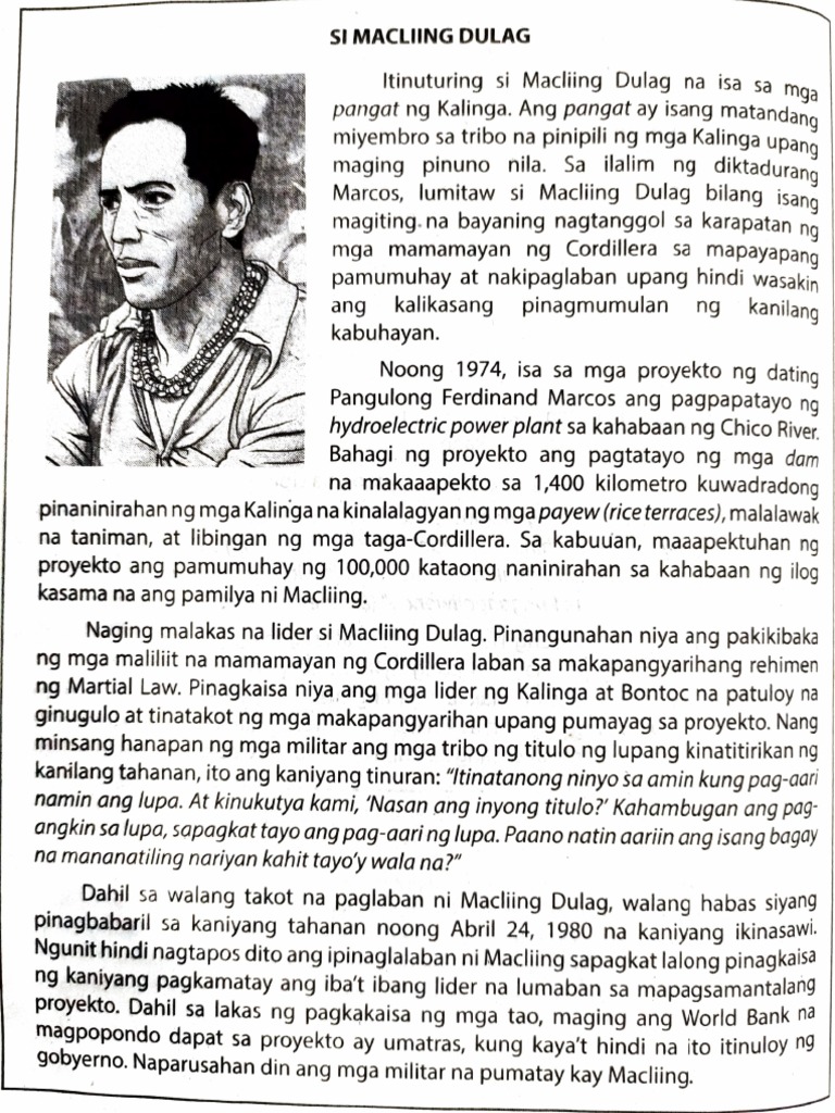 Naging malakas na lider si Macliing Dulag. Pinangunahan niya ang pakikibaka