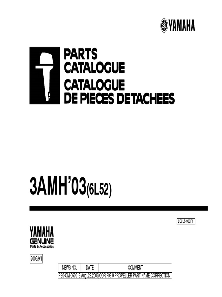 the Yamaha Parts News. 3AMH S/L 6L5K : 1000001