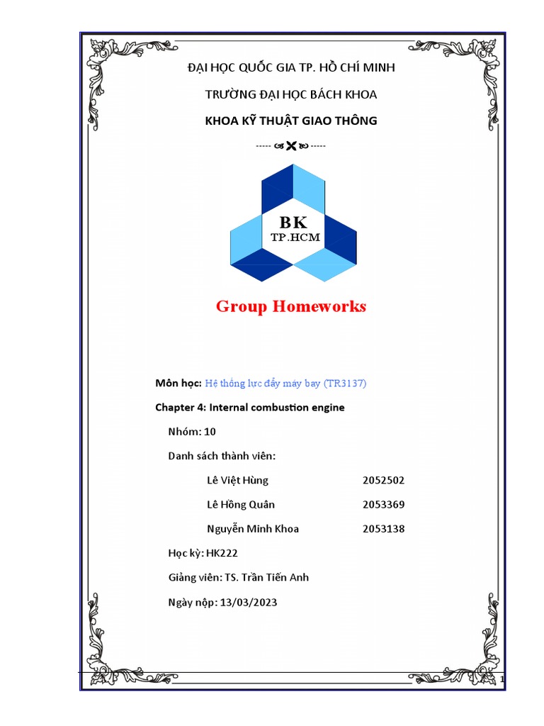 Môn học: Hệ thống lực đẩy máy bay (TR3137)