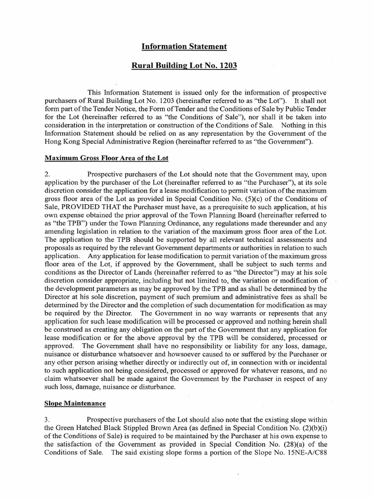 3. Prospective purchasers of the Lot should also note that the existing slope within