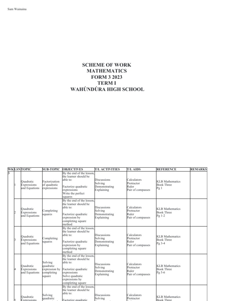 SCHEME OF WORK