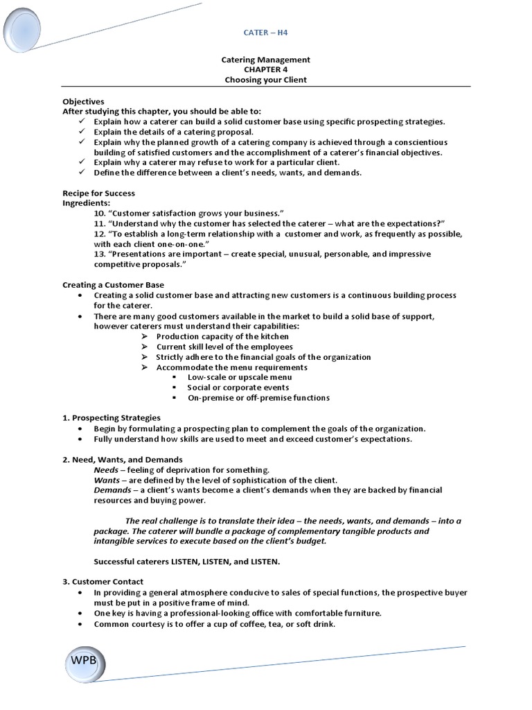 building of satisfied customers and the accomplishment of a caterer’s financial objectives.