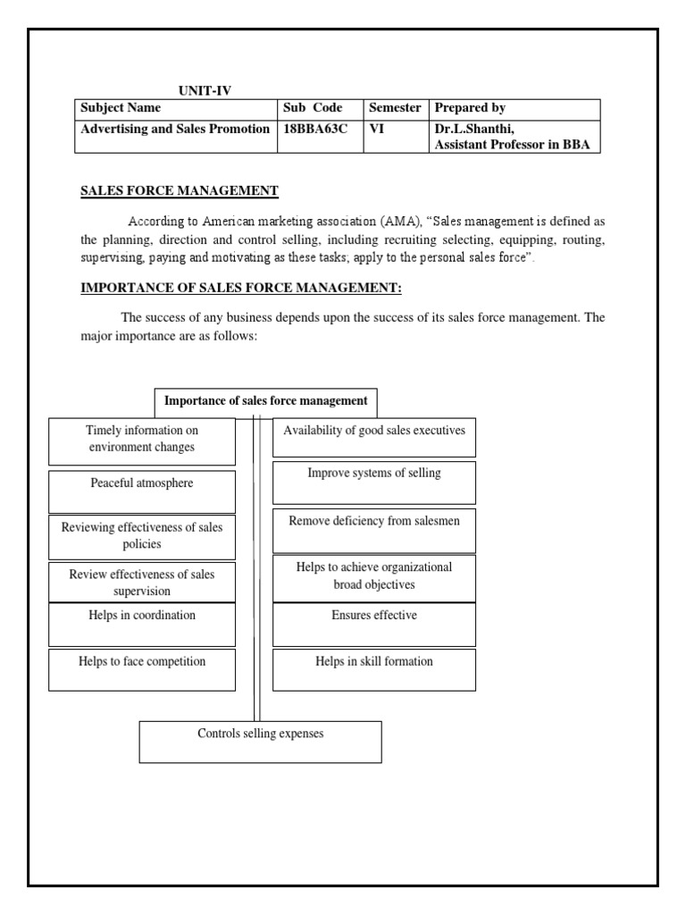 IMPORTANCE OF SALES FORCE MANAGEMENT: