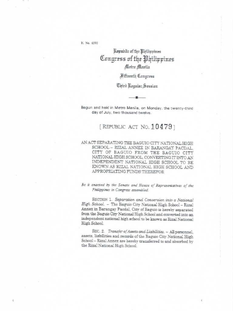 AN ACT SEPARATING THE BAGUIO CITY NATIONAL HIGH