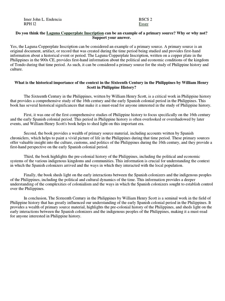 information about a historical event or period. The Laguna Copperplate Inscription, written on a copper plate in the