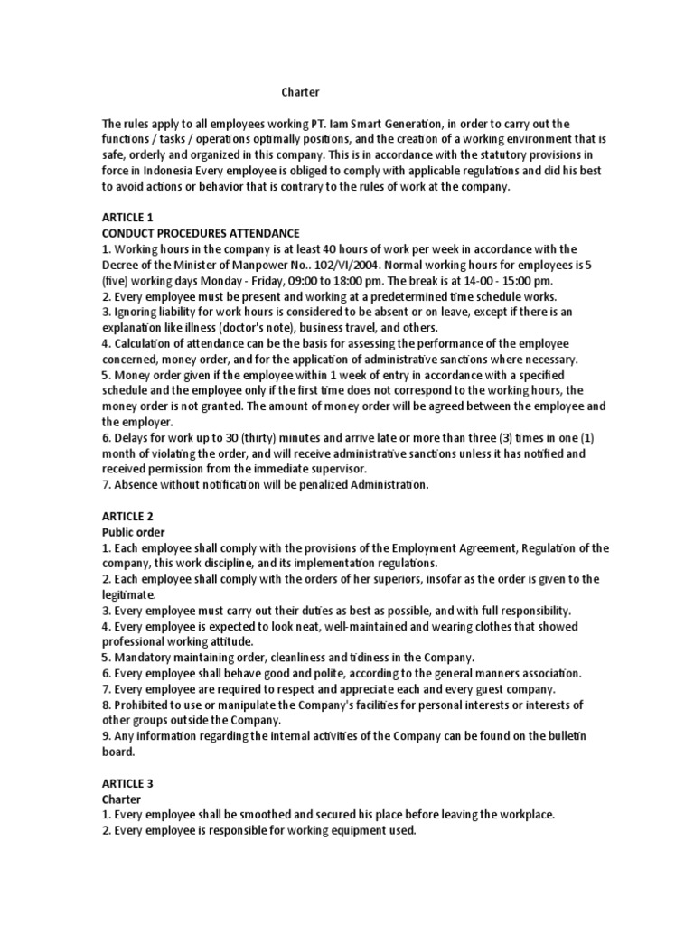 The rules apply to all employees working PT. Iam Smart Generation, in order to carry out the