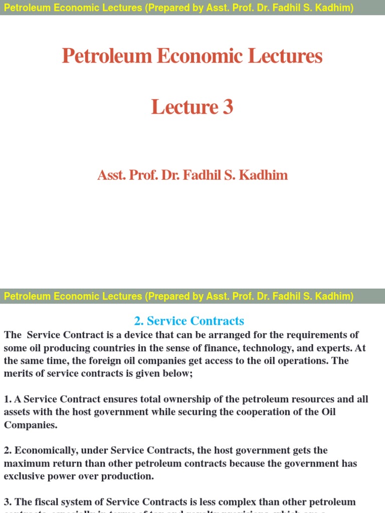 Petroleum Economic Lectures (Prepared by Asst. Prof. Dr. Fadhil S.