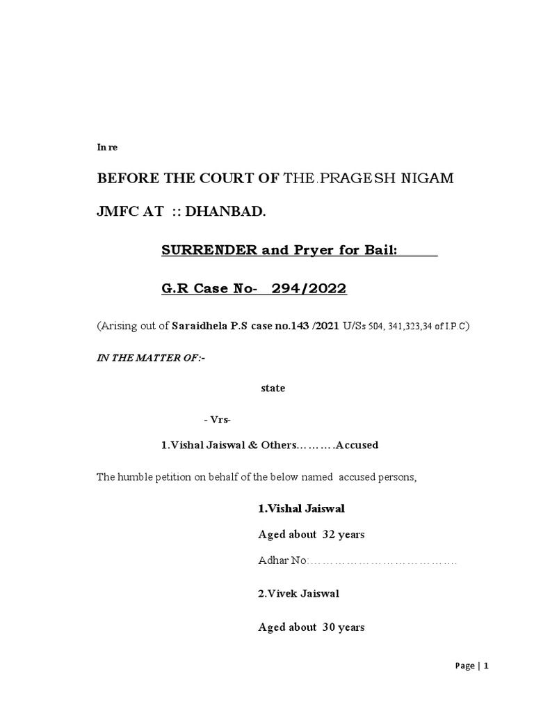 (Arising out of Saraidhela P.S case no.143 /2021 U/Ss 504, 341,323,34 of I.P.C)