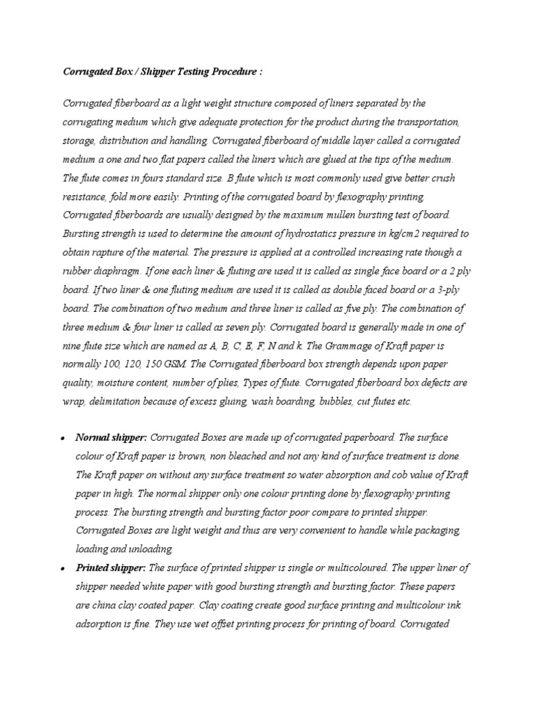 Corrugated Box / Shipper Testing Procedure :