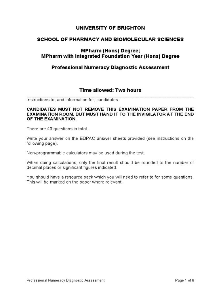 Professional Numeracy Diagnostic Assessment Page 1 of 8